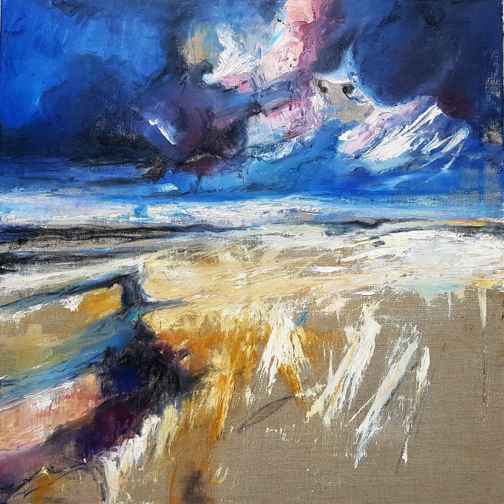 Silent as Stone, acrylic and charcoal on canvas, SOLDCrossing the Divide, SOLDHalcyon DaysEbb and Flow – Refraction, 40 x 40 cm, oil on canvas, SOLDEdge of Landscape, oil and cold wax on linen, SOLDPäivätär, Maiden of The Day, oil and cold wax on linen, 70 cm x 70 cm , SOLDIncoming Tide, oil and charcoal on canvas, SOLDIr Mor – To the Sea 1 SOLDIr Mor – To the Sea 2 50 x 50 cm oil on linen, SOLD